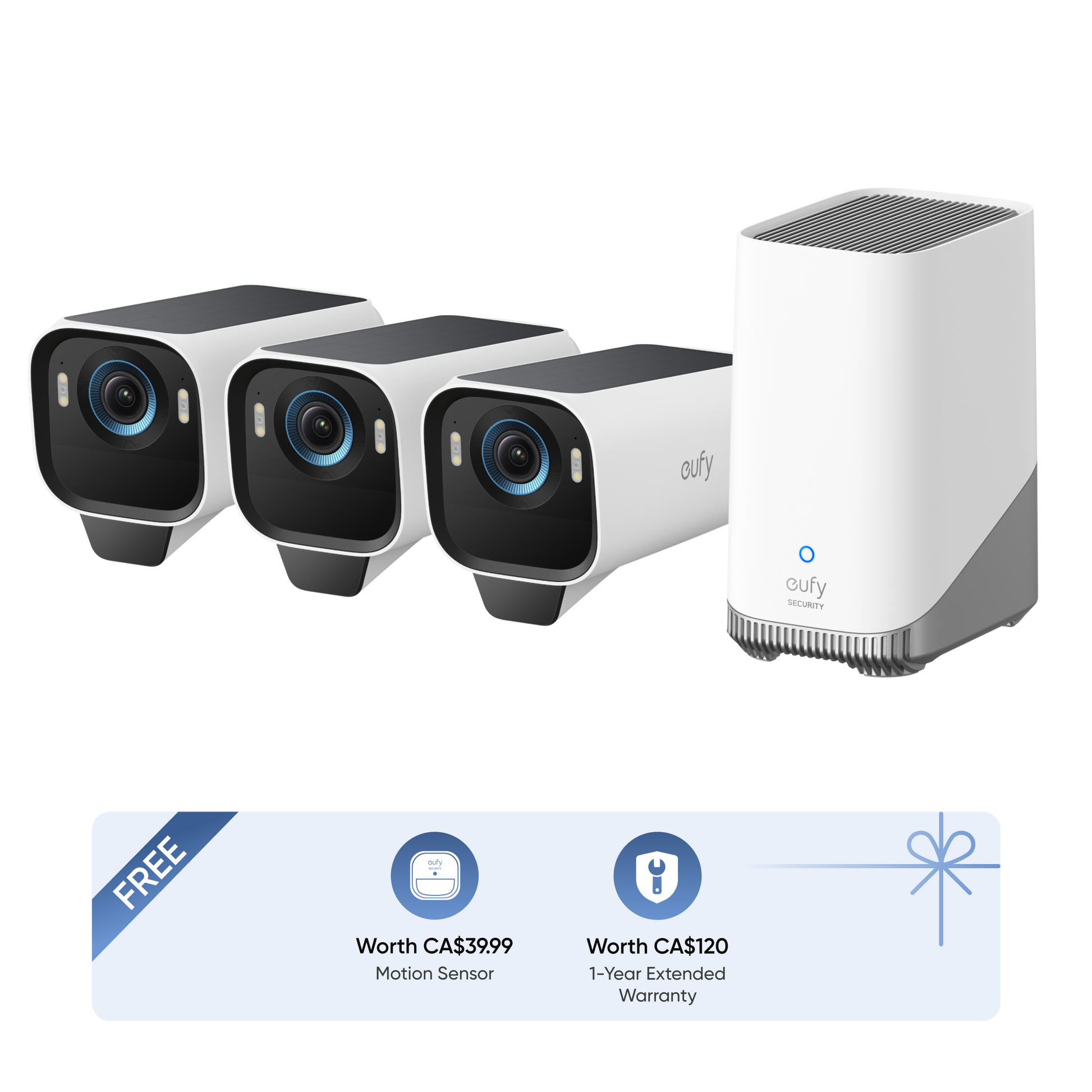 eufyCam S3 Pro 3-Cam Kit + Motion Sensor + 1-Year Extended Warranty