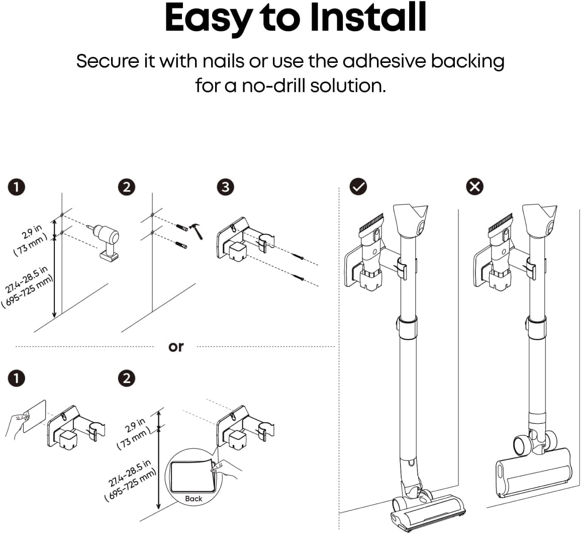 - Efficient Storage: Thoughtfully designed to accommodate both the handheld brush and the long-rod floor brush, keeping your cleaning tools organized and easily accessible.